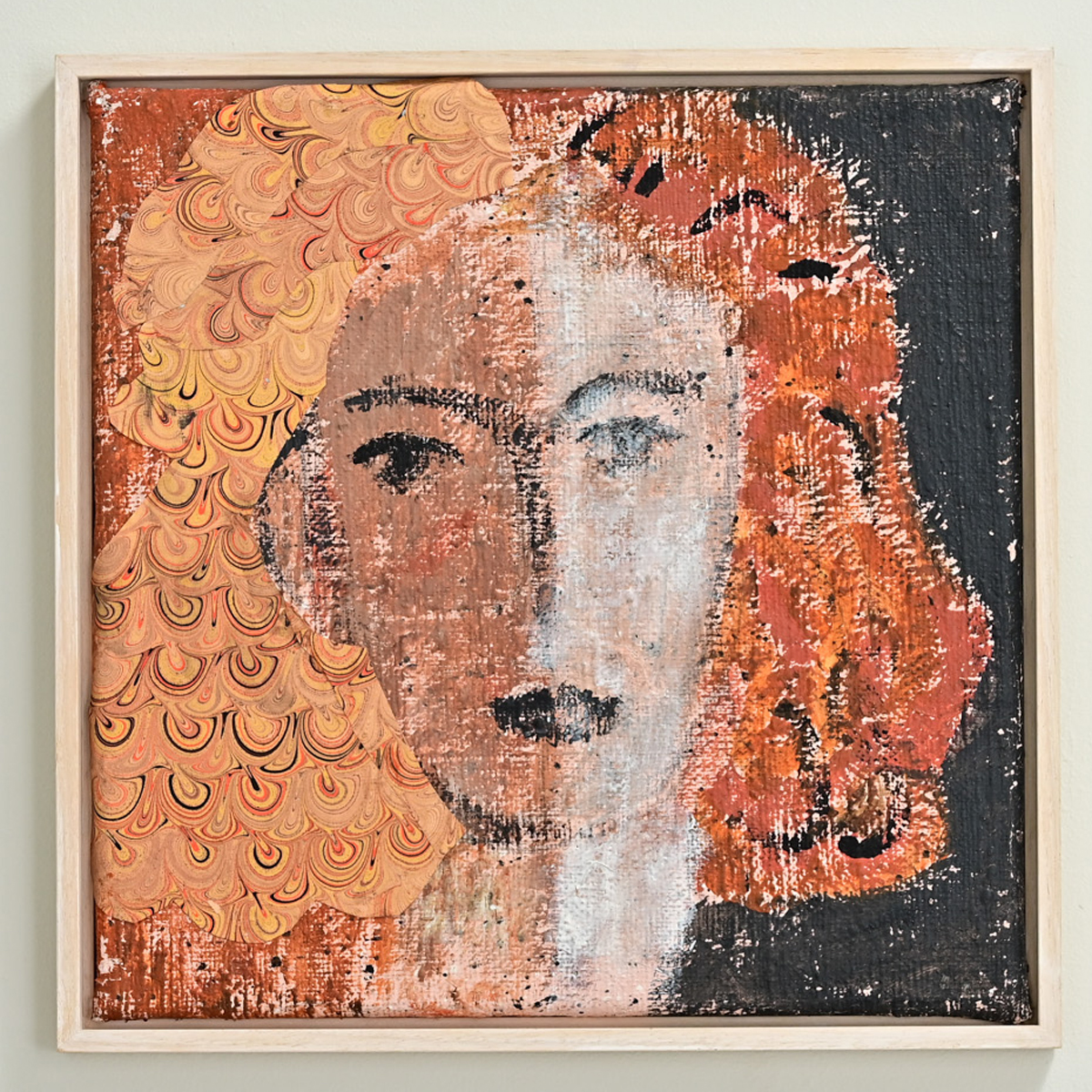 A recently made painting of a lady by an unknown Dutch artist. The mixed media collection of materials on canvas depicts a lady’s face and is framed in a simple wood frame. Be sure to view the detailed images.