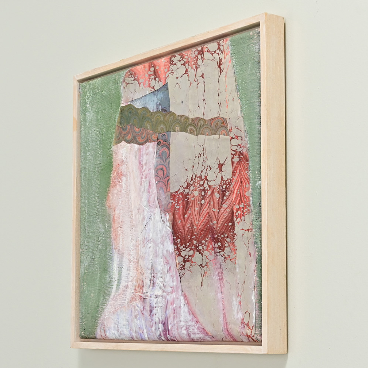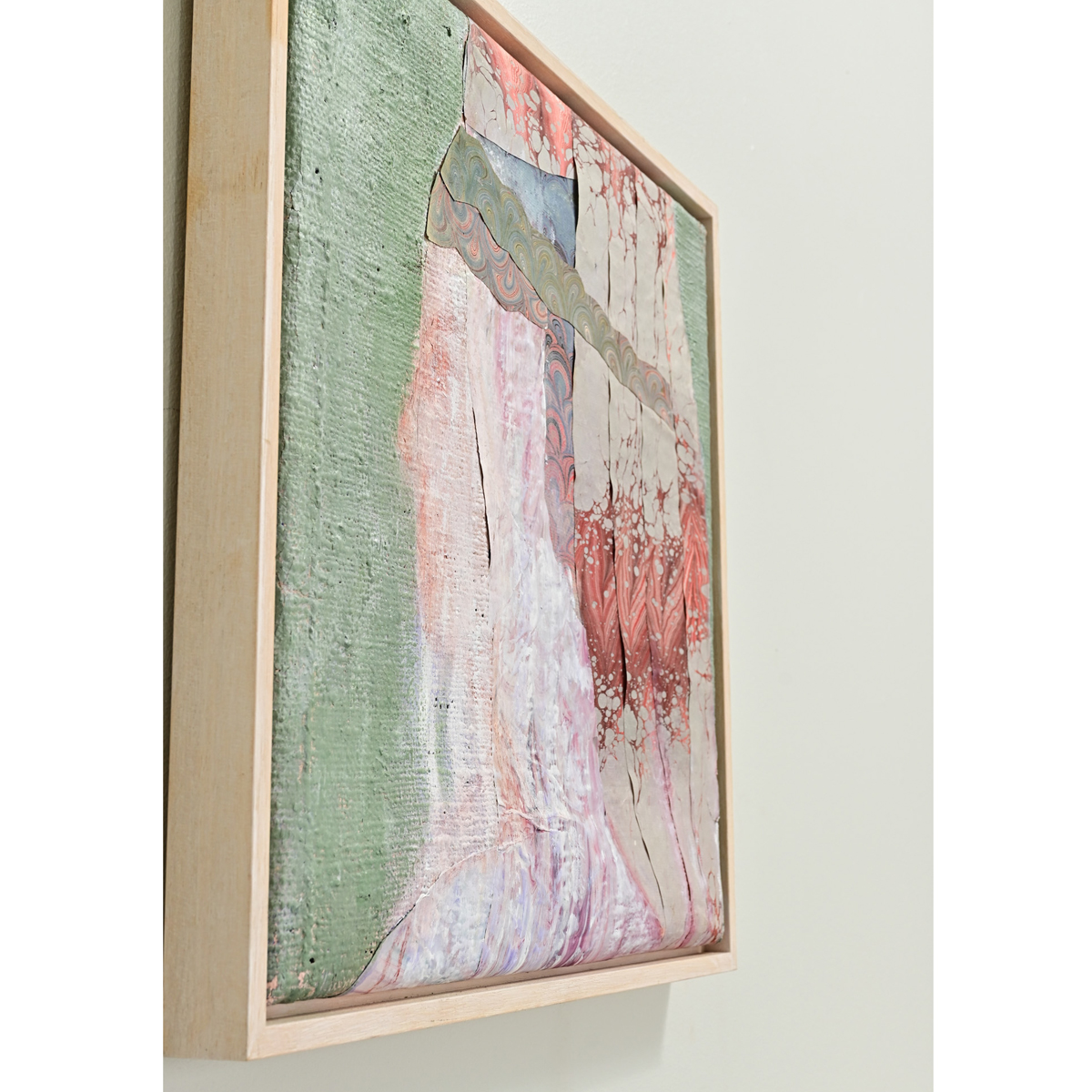 A recently made painting of a lady by an unknown Dutch artist. The mixed media collection of materials on canvas depicts a lady’s face and is framed in a simple wood frame. Be sure to view the detailed images.