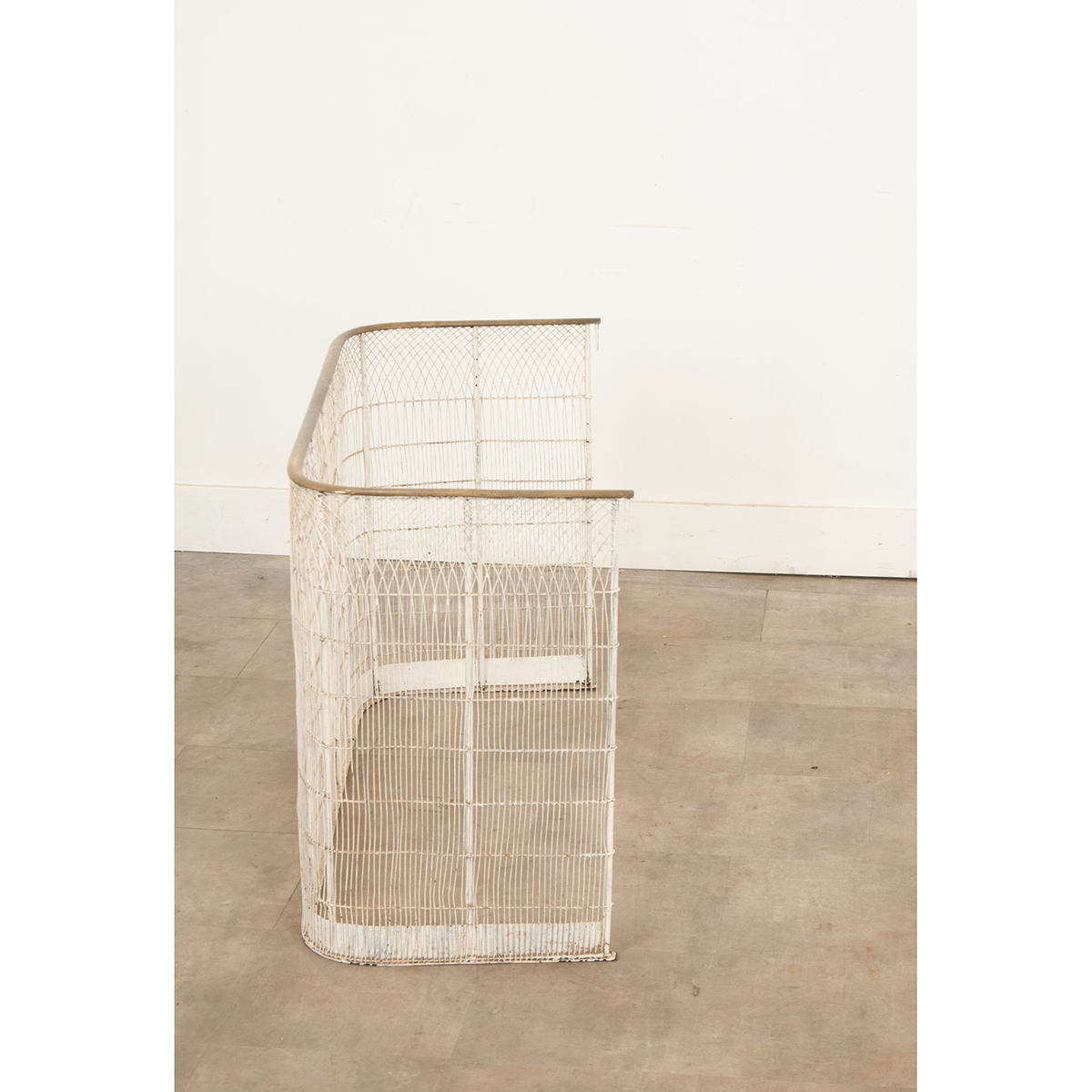 A beautifully painted English fireplace screen or guard, made there circa 1820. The curved design is intended to help keep coals, embers and sparks in the fireplace and clothing, pets and small children out. They are sometimes called nursery guards and allow all to enjoy the warmth of a wood burning fire from a safe distance. In warmer months, when the fireplace is not in use, a firescreen will add interest and obscure the empty fireplace from sight. This screen is painted white and has a decorative brass band that ornaments its top. Be sure to view all the images for a closer look at this wonderful antique.