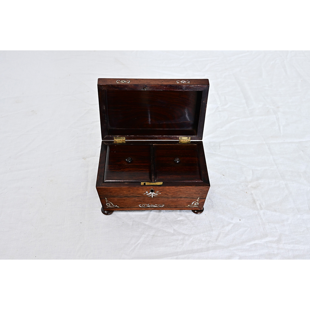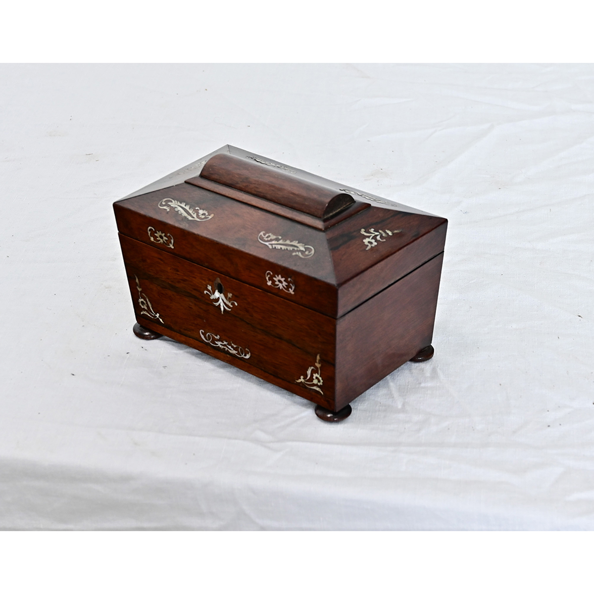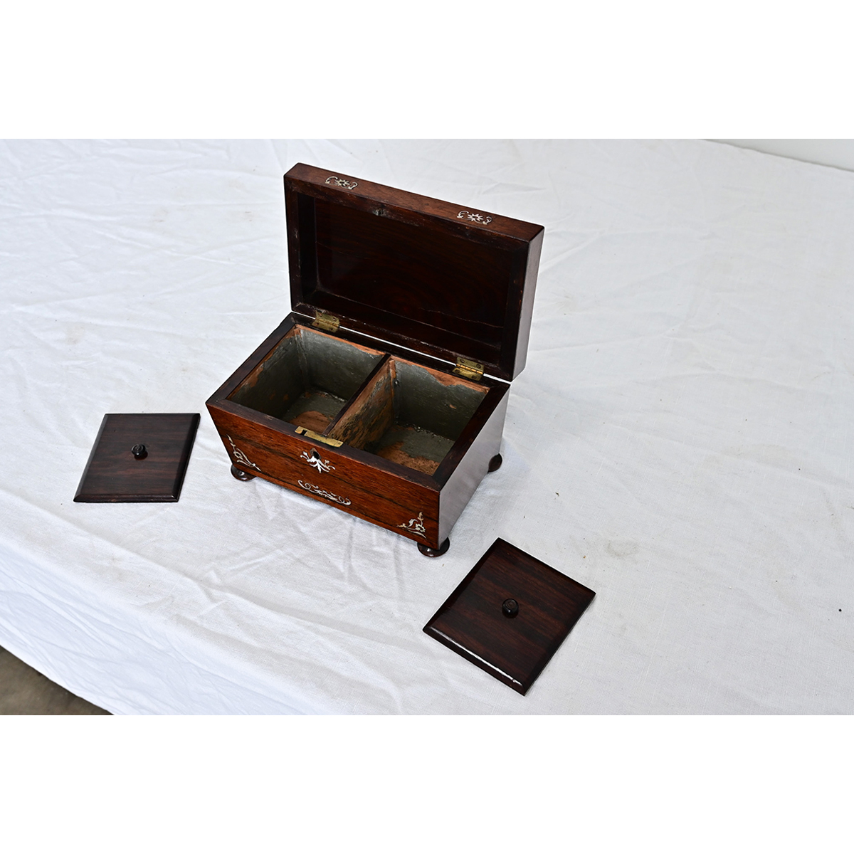 English 19th Century Rosewood and Mother of Pearl Tea Caddy