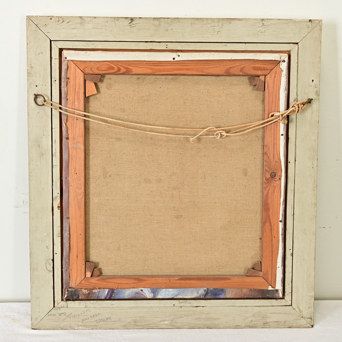 A spirited French oil on canvas painting of vintage age & condition. To call the work a “still-life” is a disservice to the vitality and celebration of color happening within the scene; the vase at center overflows with bursts of pink, orange, yellow, and white blossoms in impasto technique reminding the viewer of the abundance and excitement of gardens at the height of summer. This small painting will surely command attention in any gallery wall collection but has the presence to stand on its own as well. Currently set within a simple wood picture frame and ready to hang in your interior. Dedicated by the artist to their mother, for Christmas 1976, on the reverse as well as a signature on the front. Please view the detailed images to see more.