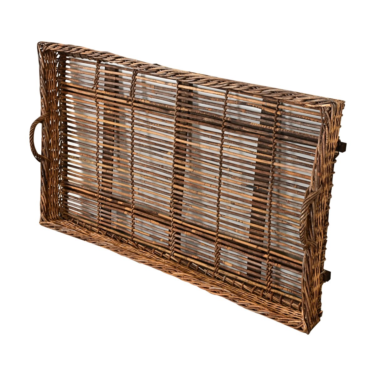 An enormous French basket from the late 19th century, likely used in a bakery or boulangerie for displaying baguette or other breads, if not in the vineyards for harvesting grapes. Long bamboo sticks in parallel arrangement are held to a sturdy wooden frame, surrounded by tightly-braided wicker sides. Two sturdy handles facilitate easy carrying of the load. Please view the detailed images of this rare and unusual find.