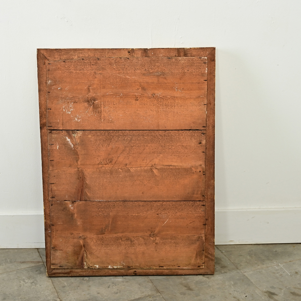A rather unique and personal trumeau mirror from 19th century France, featuring an assortment of carved and gilded gardener’s tools in the panel above the glass. This entangled amalgamation consists of a ribbon tied in a bow, above a crossed shovel and rake layered with blossoming roses before terminating at what appears to be scythes. Below these sculptural elements is the trumeau’s original mirror plate, streaked with dark foxing to beautifully complement the (patinated) sage green painted back panel. Please be sure to view the detailed images to appreciate all the wonderful features of this 19th century trumeau mirror.