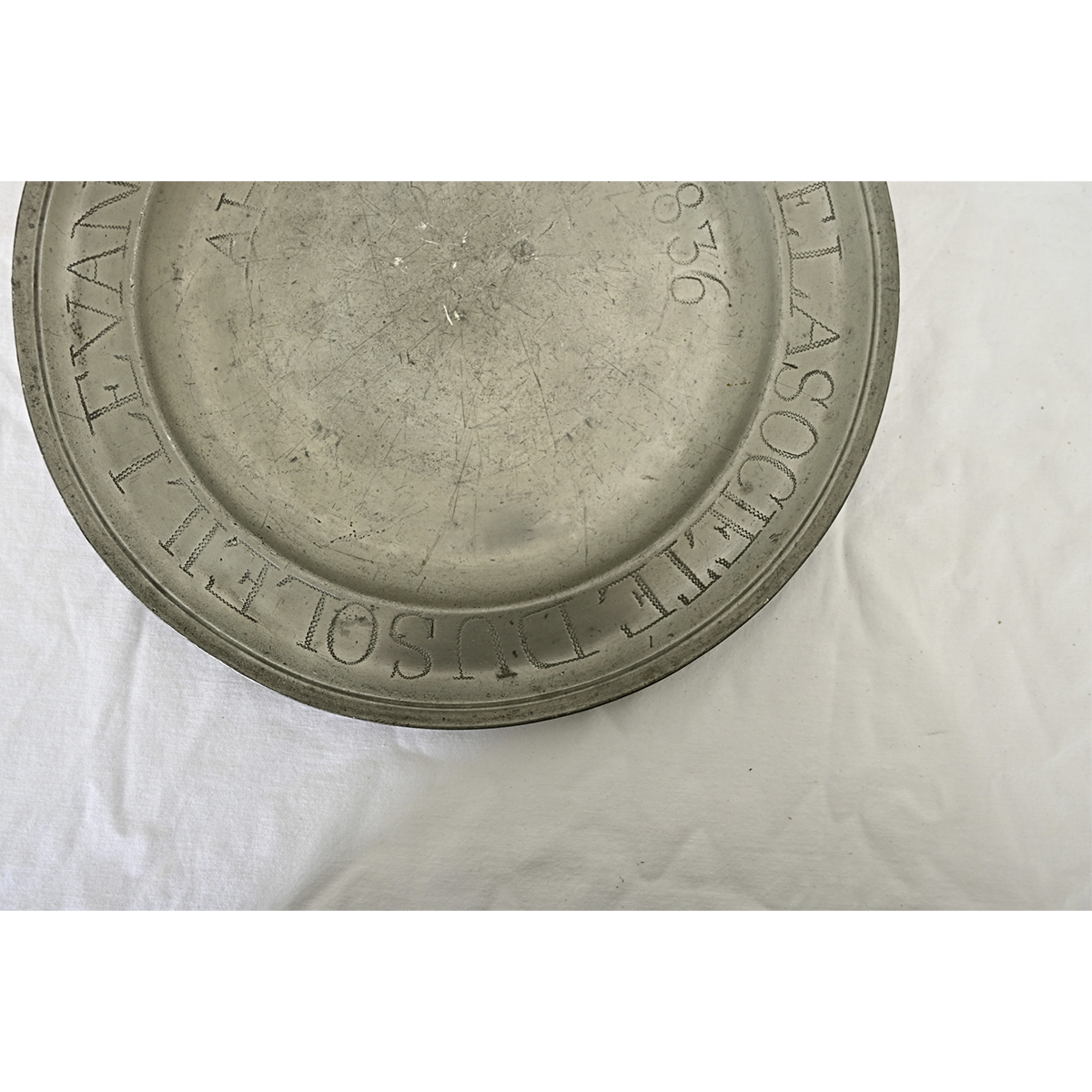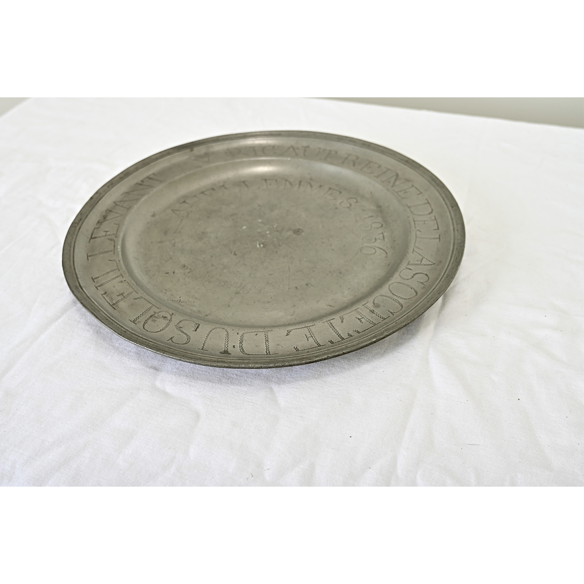 French 19th Century Pewter Dedicatory Charger Plate