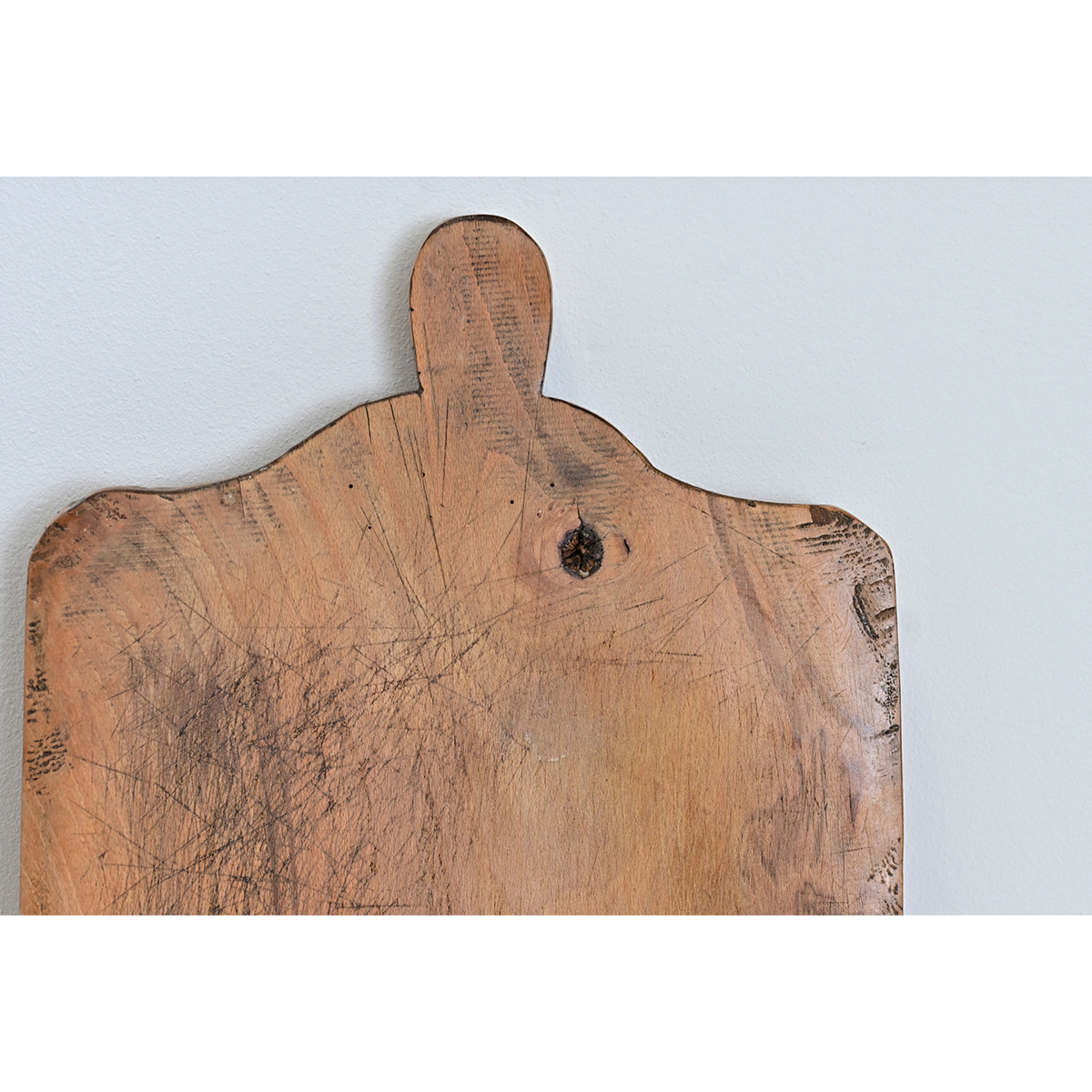 This solid-plank French chopping board features rustic simplicity and generous scale to use or display. Patina from regular use intersecting the warm hue of the wood grain brings further visual interest to the elegantly carved form. Gently cleaned and polished with a French paste wax to preserve the character. Please view the detailed images as they are an essential part of the description.
