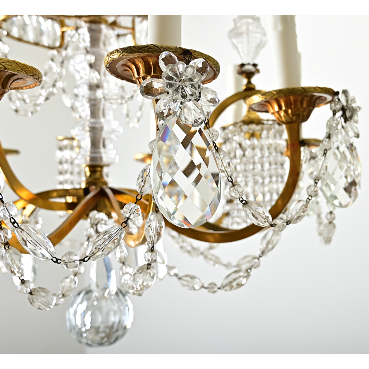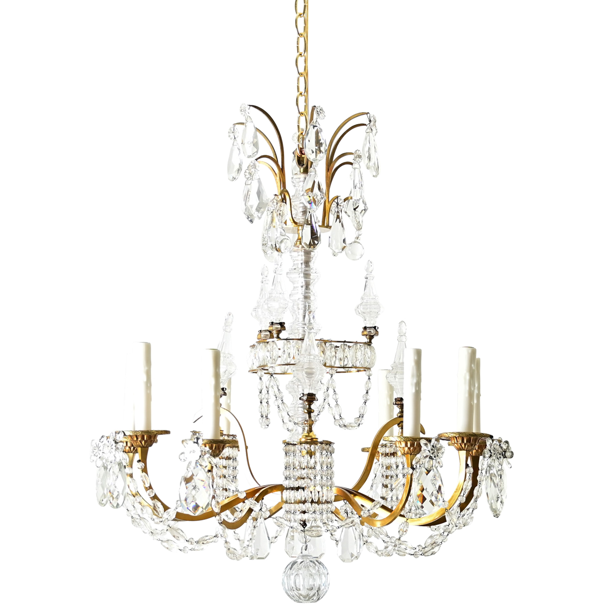 French 19th Century Brass & Crystal Chandelier