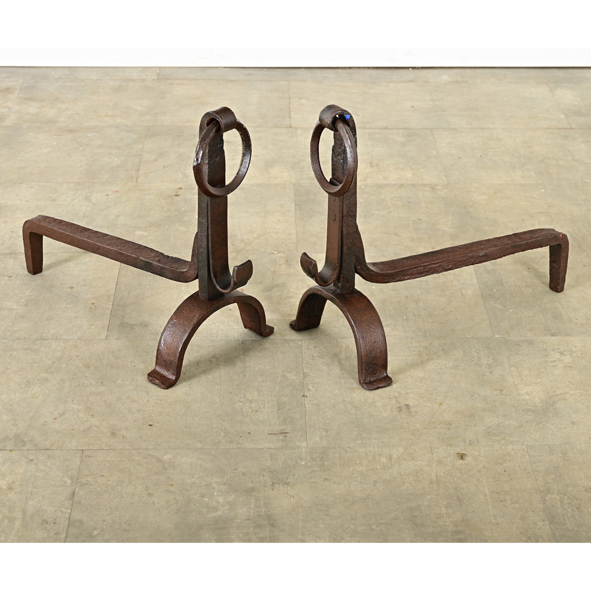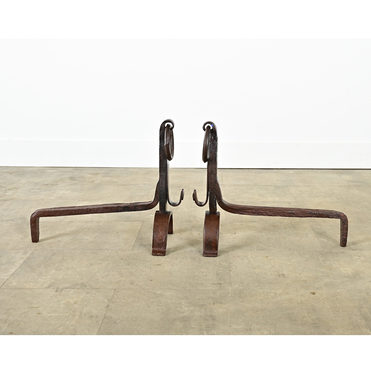 French Pair of Hand Forged Iron Andirons
