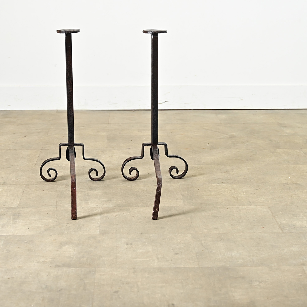 French Pair of Hand Forged Iron Andirons