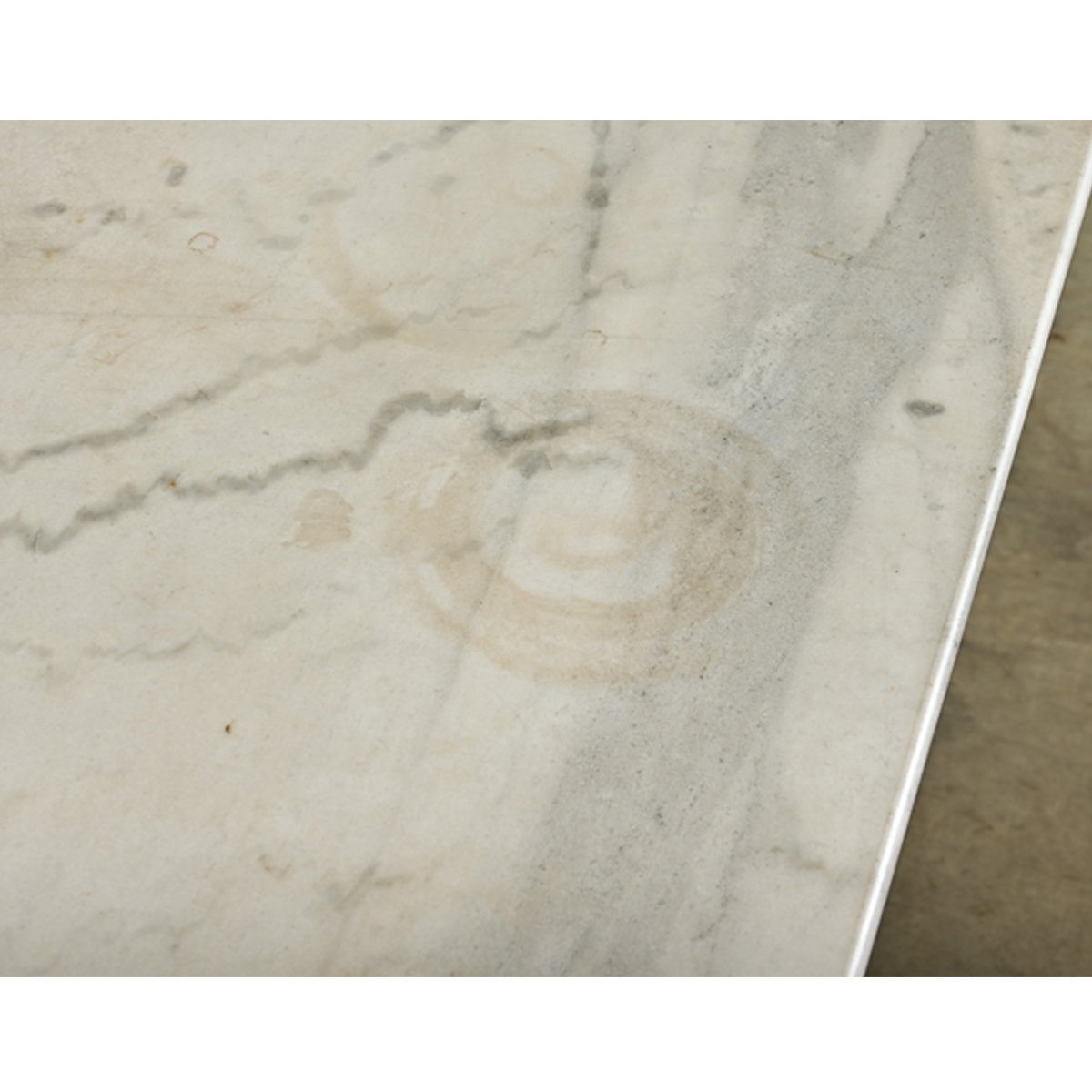 A charming French 19th century bistro table, perfect for entertaining or everyday use, indoors and out! The original white marble shows expressive gray veining under a smooth surface. Scratches and staining of the stone consistent with age and type of use. Please view the detailed images to see the current condition of this bistro table.