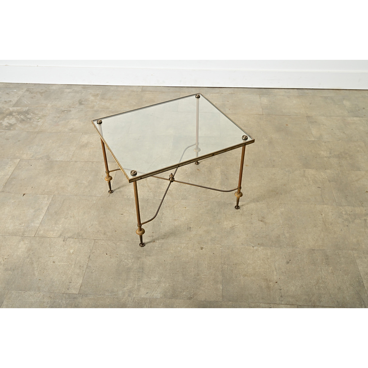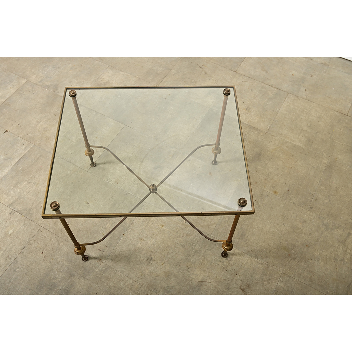 French Modern Square Brass & Glass Coffee Table