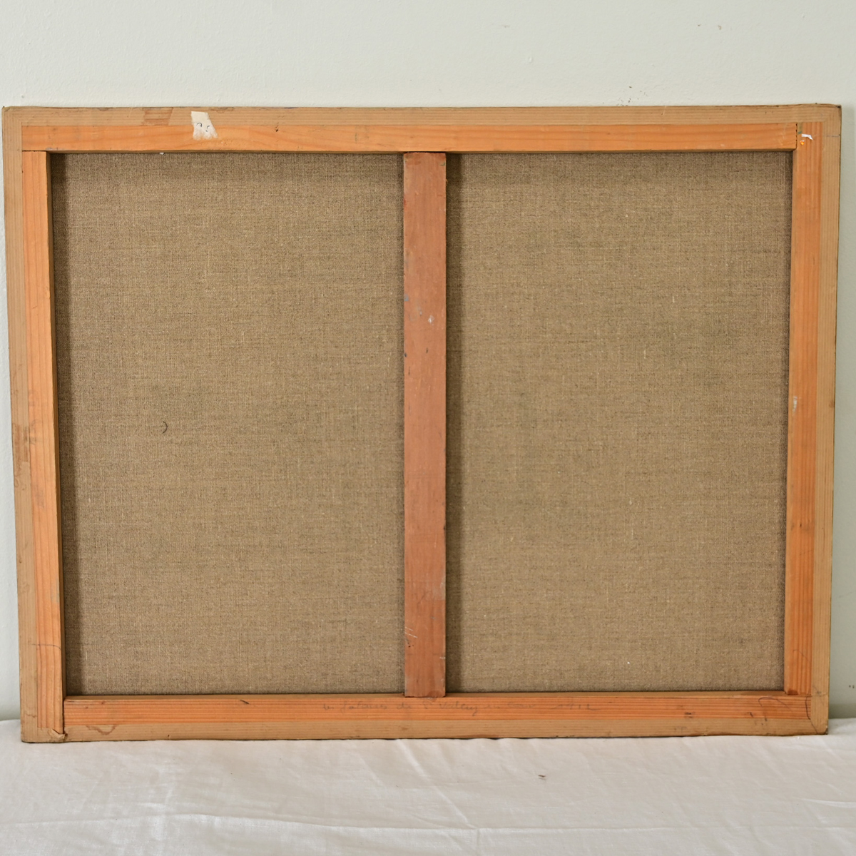 A spirited French oil on canvas painting of vintage age & condition. To call the work a “still-life” is a disservice to the vitality and celebration of color happening within the scene; the vase at center overflows with bursts of pink, orange, yellow, and white blossoms in impasto technique reminding the viewer of the abundance and excitement of gardens at the height of summer. This small painting will surely command attention in any gallery wall collection but has the presence to stand on its own as well. Currently set within a simple wood picture frame and ready to hang in your interior. Dedicated by the artist to their mother, for Christmas 1976, on the reverse as well as a signature on the front. Please view the detailed images to see more.