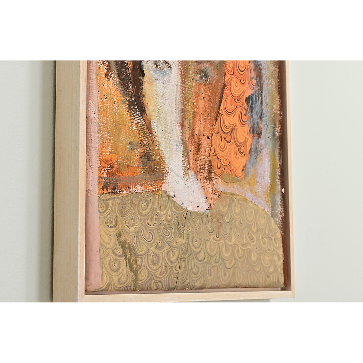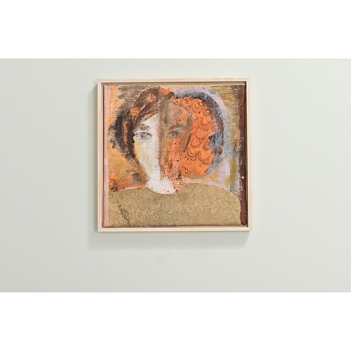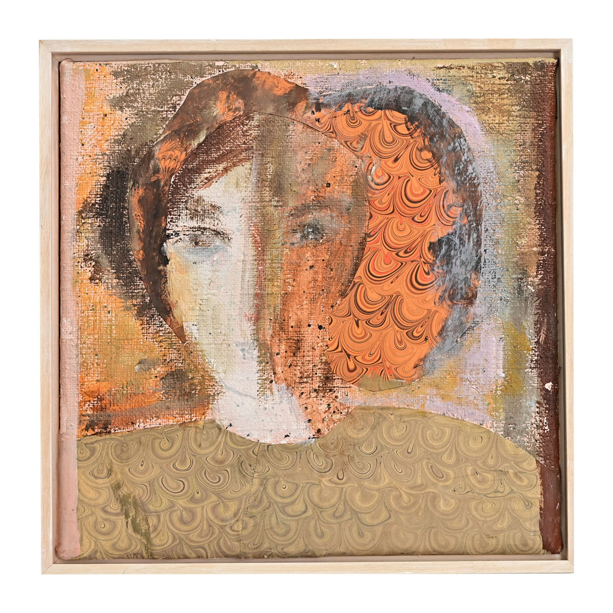 A recently made painting of a lady by an unknown Dutch artist. The mixed media collection of materials on canvas depicts a lady’s face and is framed in a simple wood frame. Be sure to view the detailed images.