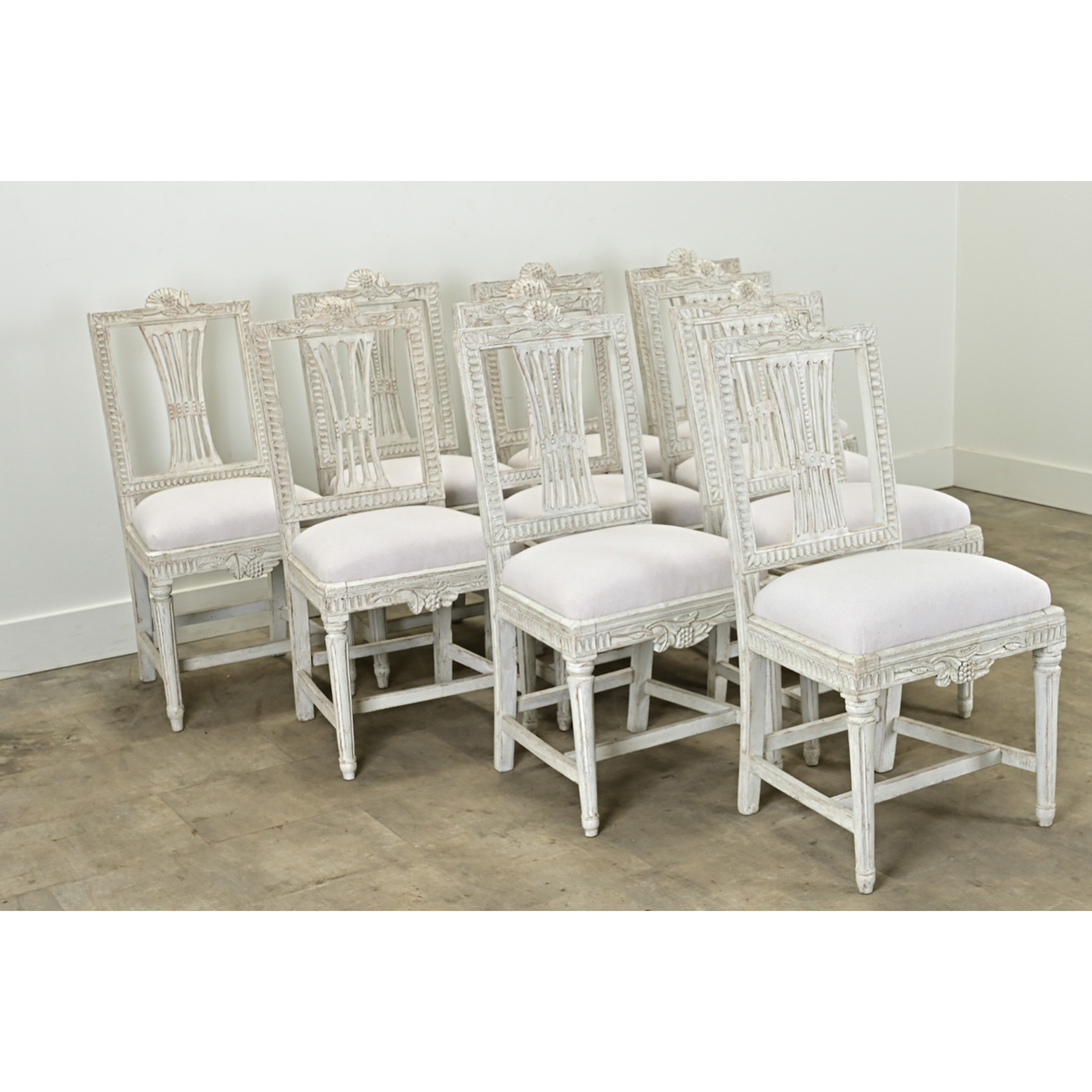 Set of 10 Swedish Gustavian Dining Chairs