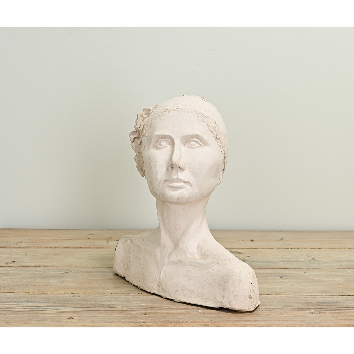 French Vintage Plaster Bust of a Woman in Laurel Leaf Crown